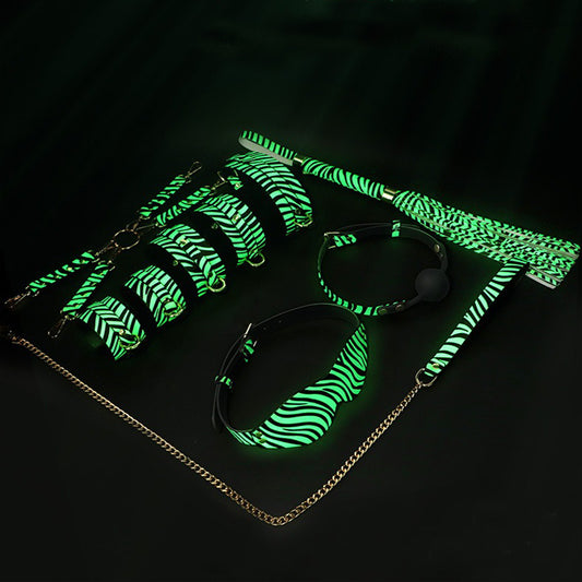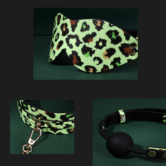Luminous SM props leopard print seven-piece set fun collar traction restraint handcuffs and leg cuffs sp punishment adult products